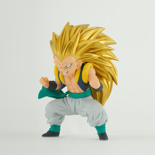 Measuring 3.5" tall, this PVC figure depicts Gotenks charging up his power, showcasing his incredible strength. With its vibrant colors and meticulous sculpting, it's a perfect collectible for Dragon Ball Z fans.