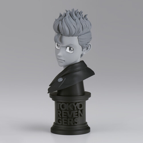 Available in color and in a black and white variant (sold separately) Takemichi wears a stern expression and measures 4 2/7" tall on a branded pedestal base.