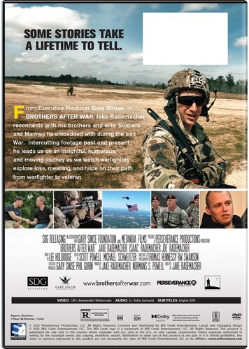 From Executive Producer Gary Sinise, in Brothers After War, Jake Rademacher reconnects with his brothers and elite Soldiers and Marines he embedded with during the Iraq War. Intercutting footage past and present, he leads us on an insightful, humorous, and moving journey as we watch warfighters explore loss, meaning, and hope on their path from warfighter to veteran.
