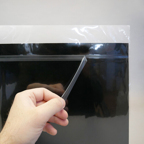 POLYPROPYLENE (PP) is a crystal-clear, high sheen, crisp material. We use bi-oriented polypro which means that when the material is made, it is stretched in both directions so that in time it will not "pucker" (decreasing the clarity). Use for Long-term storage. This material does not contain PFSAs (forever chemicals).