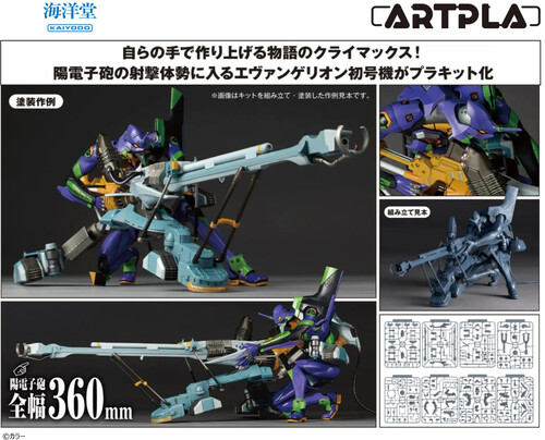 Build the story to its climax with your own hands! Evangelion Unit-01 ready to fire its positron cannon is now available as a plastic model kit.