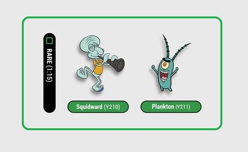 - Common: SpongeBob SquarePants #Y202, Patrick #Y203, Mr. Krabs #Y204, Gary #Y205