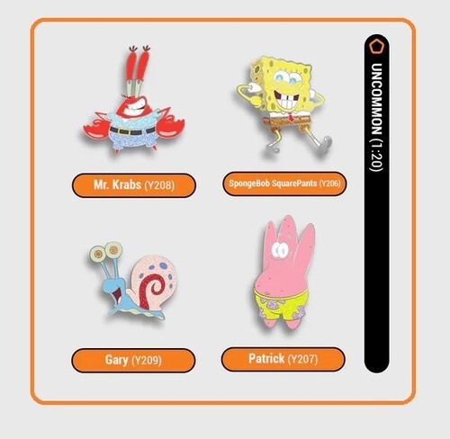 - Uncommon: SpongeBob SquarePants (Glitter) #Y206, Patrick (Glitter) #Y207, Mr. Krabs (Glitter) #Y208, Gary (Glitter) #Y209