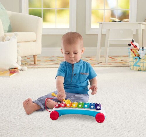 The Fisher-Price® Classic Xylophone pull toy has 8 colorful keys to encourage early music-making creativity, helping toddlers develop a sense of accomplishment. And as their musical abilities grow, mini maestros can follow the colors to create a real song!