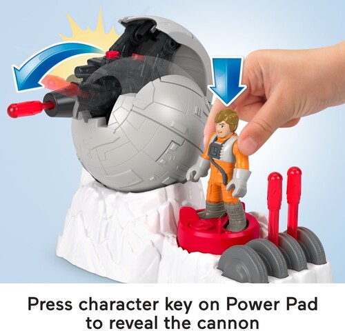 Inspired by the STAR WARS movies, this set includes a projectile launcher, 3 projectiles, and a Luke Skywalker diecast metal character key. Kids can get the play started by pressing the character key on the Power Pad to reveal the hidden toy cannon, then push the button to send projectiles flying.