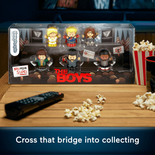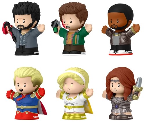 Reimagined as Little People® figurines, this set includes The Boys: Mother's Milk, Hughie Campbell and Billy Butcher, along with The Supes: Homelander, Starlight and Queen Maeve.