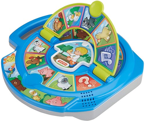 From the farm and into the wild, the Little People® World of Animals See 'n Say® musical learning toy helps introduce toddlers to a variety of creatures in the animal kingdom. Toddlers can choose one of two pages, then point Eddie™ to an animal and pull the lever to discover its name and hear what it says! Fun songs and an interactive quiz mode enhance the learning play.