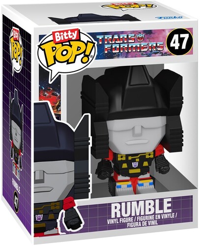 The world of POP! is getting bigger—and smaller—with Bitty POP! collectibles! Expand your Transformers™ collection with Bitty POP! Bitty Bot Soundwave with Rumble! Bitty POP! figure is packaged in a hard acrylic display case with a detachable bottom lid. The detachable bottom lid doubles as an acrylic base, to which the Bitty POP! figure is adhered. Remove Bitty POP! Rumble from his display case so he can take his place in Bitty POP! Bitty Bot Soundwave! Vinyl figures are approximately 0.9 and 4.8-inches tall. Warning: Choking Hazard. Collectibles are small. Not for children under the age of 3 years old.