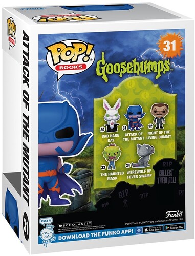 The Masked Mutant is here to conquer your spine-chilling lineup as Pop! Attack of the Mutant! Enjoy daring thrills when this villain leaps straight out of R. L. Stine’s Goosebumps® and into your Pop! Books collection! Vinyl figure is approximately 3.8-inches tall.