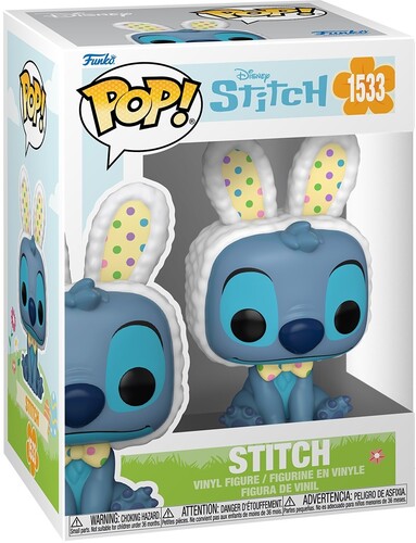 Hop into your favorite springtime celebrations with Pop! Stitch! This adorable alien experiment has donned a white and pastel bunny costume and is eager to take his place in your Disney collection. Vinyl figure is approximately 4-inches tall.