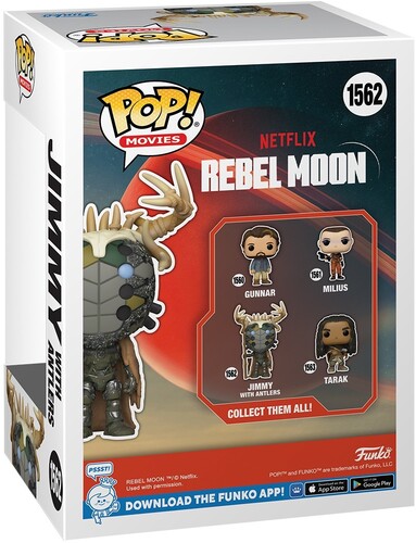 Defy the programming of the Imperium with Pop! Jimmy with Antlers! Take back Veldt by helping this robot join the band of warriors in your Rebel Moon collection. Vinyl figure is approximately 4.5-inches tall.