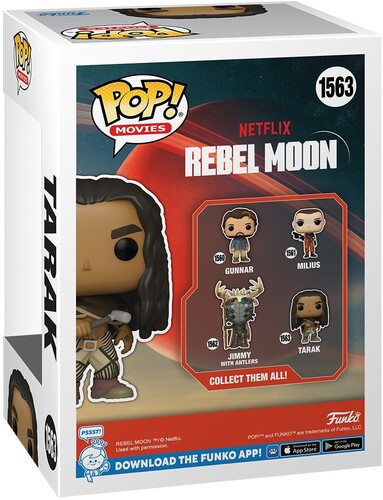 Resist the rule of the Imperium with Pop! Tarak! Take back Veldt by helping this lost prince join the band of warriors in your Rebel Moon collection. Vinyl figure is approximately 3.9-inches tall.