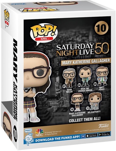 Be a superstar with Pop! Mary Katherine Gallagher! She’s eager to shine in your collection. Celebrate the 50th Anniversary of Saturday Night Live™ by making this comical character the next addition to your SNL™ lineup! Vinyl figure is approximately 3.75-inches tall.