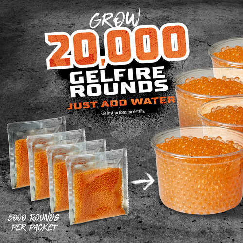 INCLUDES 20,000 DEHYDRATED ROUNDS: For use with Nerf Pro Gelfire blasters. Simply add water to grow the rounds. (Blasters each sold separately, subject to availabilty)