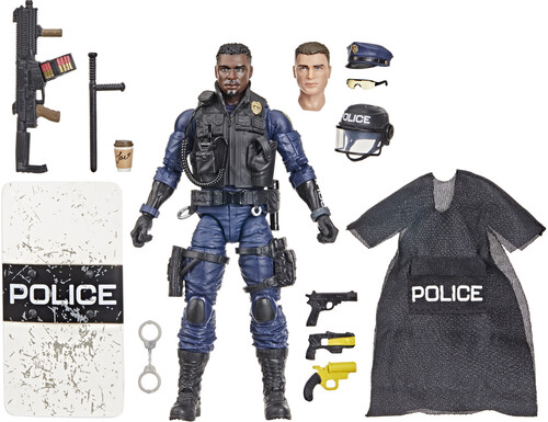 New to the G.I. Joe Classified Series Legacy Collection line, Action Joe –Police Emergency Service Unit (ESU) comes ready for adventure, with multiple points of articulation for high poseability. This Police Officer figure is bursting with 14 character-inspired accessory pieces including alternate head, hat, handcuffs, nightstick, riot helmet and shield, 2 pairs of glasses, coffee cup, taser, flare gun, weapon accessories, and softgoods poncho as well as attached two-way radio transmitted.