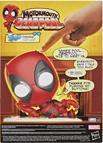 Get ready for cool quips, commentary, razor-sharp wit, and insults -- so, so many insults -- with this Marvel Motormouth Deadpool electronic Super Hero toy!