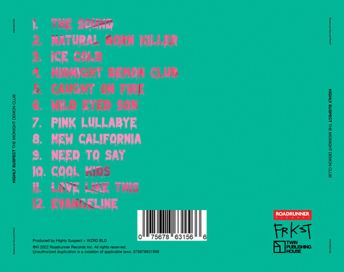 Never content to follow, highly suspect push rock music forward by trusting their instincts and raising a middle finger to everything else. The multi-GRAMMY® Award-nominated and gold-certified band - Johnny Stevens [vocals, guitar], Ryan Meyer [drums, vocals], Rich Meyer [bass, vocals], Matt Kofos [guitar] and Mark Schwartz [synths] - don't just talk about burning the rules and breaking the mold; they actually do so. The band's chemically imbalanced mix of gritty guitars, haunting piano, off-kilter synths, hip-hop production, cinematic vision, and beautifully possessed vocals transformed them into a phenomenon beloved by a diehard global fanbase known as "MCID" [My Crew Is Dope].After grinding it out as an underground curiosity, they scraped a path to mainstream infamousness with their 2015 full-length debut, Mister Asylum. It earned a GRAMMY® Award nomination in the category of "Best Rock Album" as the single "Lydia" received a nomination for "Best Rock Song" was certified gold by the RIAA. The 2016 follow-up The Boy Who Died Wolf roared to life with the gold-selling "My Name Is Human," which catapulted to #1 on the Billboard Mainstream Rock Chart and garnered a GRAMMY® Nomination for "Best Rock Song." 2019's MCID affirmed them as the rare outfit who could collaborate with Young Thug and Gojira on the same album. Loudwire hailed the latter among the "50 Best Rock Albums of 2019." With hundreds of millions of streams and sold out shows on multiple continents, highly suspect charge ahead of the pack again on 2022's The Midnight Demon Club with no compromises and no apologies as they challenge rock to be dangerous and maybe even life-changing again. TRACKLISTING 1. The Sound. 2. Natural Born Killer 3. Ice Cold 4. Midnight Demon Club 5. Caught On Fire 6. Wild Eyed Son 7. Pink Lullabye 8. New California 9. Need To Say 10. Cool Kids 11. Love Like This 12. Evangeline.