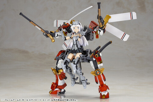 By combining the Frame Arms Girl, Frame Arms, and Exosuit Unit, users can have a Frame Arms Girl model wear an exoskeleton power suit!