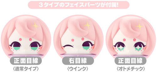 - This figure comes with the following face parts: “looking forward (default),” “looking right (winking),” and “looking forward (sparkling)”! Users can enjoy changing the character’s line of sight by exchanging the face parts.