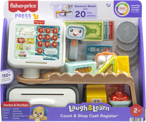 The Laugh & Learn Count & Shop Cash Register from Fisher-Price is an electronic learning toy that introduces toddlers and preschoolers to numbers, counting, the alphabet, colors, shapes and more!