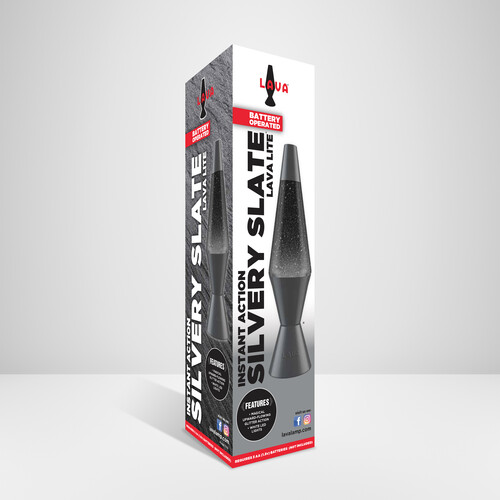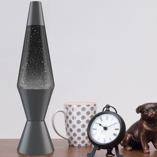 Lava® Lamp 10" Mini Silvery Slate - White LED Light/Black Liquid/Silver Glitter Black Base