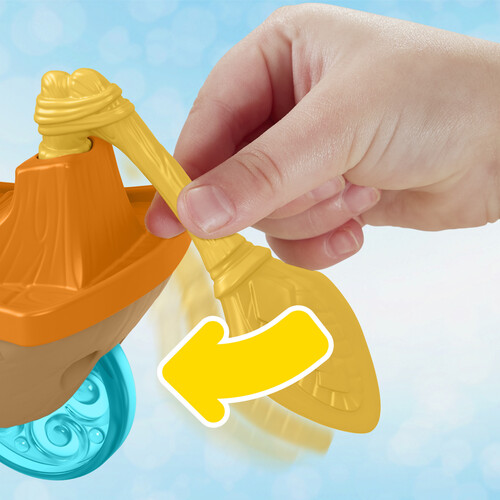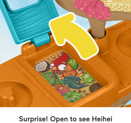 The push-along toy canoe features fun wave-like motion as kids roll it along, plus a pivoting sail, spinning oar and hatch that opens to reveal Heihei. Kids can place Moana and Maui on board and push to send the friends sailing along.