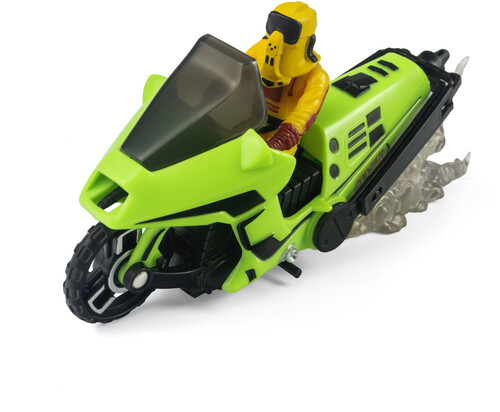 The Loyal Subjects’ M.A.S.K. Condor converts from Covert Assault Cycle to Attack Copter, complete with spinning rotor blades and sleek design. Featuring Brad Turner with his removable mask, this set includes premium upgrades like realistic rubber tires, detailed engine sculpting, and dynamic accessories such as laser bursts and smoke trails.
