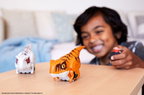 Emphasizing the excitement of human and dinosaur interaction, these toy creatures are more than 6-inches long and allow a kid to play at becoming a dinosaur trainer using a handheld clicker. Clicker control makes them move forward, spin and issue cool sounds.