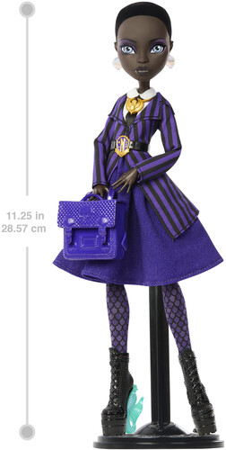 Channeling her inner queen bee, this Bianca Barclay collectible doll embellishes her Nevermore Academy uniform with siren-inspired touches. Whether battling a supernatural entity or ruling the school from fencing class to choir practice, Bianca does it all with petrifying poise!