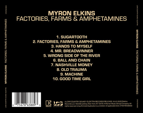 Emerging singer, songwriter and musician, Myron Elkins, delivers his anticipated debut album, Factories, Farms & Amphetamines, via Low Country Sound/Elektra. Helmed by Grammy Award-winning producer Dave Cobb and recorded at Nashville's historic RCA Studio A, the album features ten tracks - including the previously released "Hands to Myself" - that demonstrate Elkins' sharp observational songwriting as he infuses his music with rich personal experience informed by his working-class upbringing. Elkins shares, "I'm from a small town in Michigan and I started out welding for a living at age 17, so going from that into Studio A and recording an album with Dave Cobb is just kind of surreal. It was a great experience, and I loved being able to record the album as a live band. I'm real proud of this album."