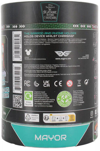 Seamlessly blending spookiness with functionality, this figure, inspired by the iconic character, features a scary , two-faced figure with hands designed to securely hold your earbuds or phone, adding a touch of whimsical charm to your space. _xDC7B_Perfect for keeping your earbuds, phone, and other small gadgets organized. Officially licensed by Disney, styled on Mayor from The Nightmare Before Christmas franchise. A great gift for all those Halloween and scary gadget lovers. Approx 4" tall. Earbuds not included.