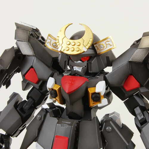 P.M. Office A's Masayuki version of the Sanada mecha from their Pla Act lineup is about 5" tall after assembly. He features multiple options for the crest on his helmet, and lots of weapons too!