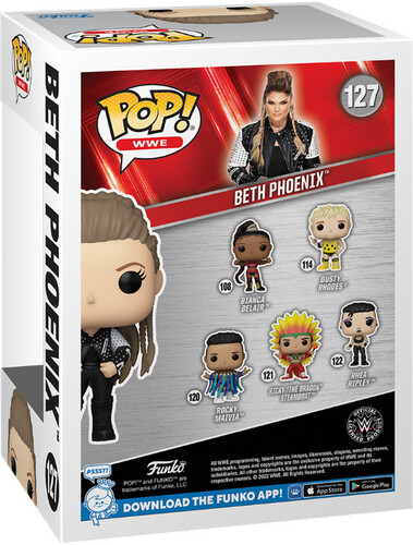 Beth Phoenix is making her way into your WWE collection! This WWE Beth Phoenix Funko Pop! Vinyl Figure #127 measures approximately 4-inches tall and comes packaged in a window display box. Welcome this wrestling legend into your WWE collection in her 2010 green SmackDown gear!