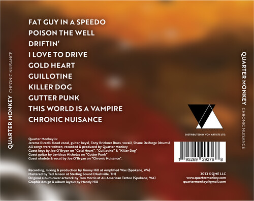 Quarter Monkey are a Spokane, WA based alternative rock band with a strong power trio effect. Their current full-length release, Chronic Nuisance, promises to be their best work to date, with vinyl going into shops and shows starting June 7th, 2024. Quarter Monkey recently signed with Von Artists for global digital distribution with The Orchard + physical CD distribution with Alliance Entertainment, and their entire back catalog can be accessed through their DSP accounts.
