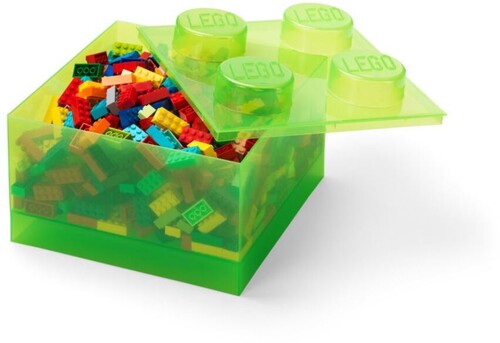 LEGO Stackable Storage Brick with 4 Knobs, Light Green with a Top Lid Translucent