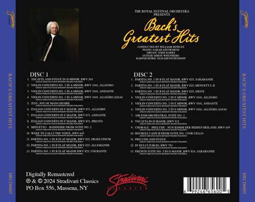 The Royal Festival Orchestra delivers a stunning rendition of some of Bach's greatest hits in this superb selection from Hindsight Records' Signature Series. These performances, meticulously curated, showcase classical compositions through masterful interpretations and exceptional recordings, with each selection honoring the majesty of the music and the enduring legacy of some of classical music's most iconic composers.