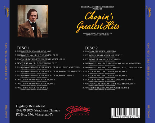 The Royal Festival Orchestra delivers a stunning rendition of some of Chopin's greatest hits in this superb selection from Hindsight Records' Signature Series. These performances, meticulously curated, showcase classical compositions through masterful interpretations and exceptional recordings, with each selection honoring the majesty of the music and the enduring legacy of some of classical music's most iconic composers.