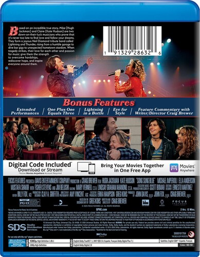 Highlighted by magnetic performances from Hugh Jackman and Kate Hudson, this moving and offbeat music biodrama-based on a 2008 documentary-tells the true story of Lightning & Thunder, a Neil Diamond tribute band formed by Mike and Claire Sardina. The somewhat unexpected success they achieved in the 1990s is surpassed only by Mike and Claire's amazing love story, which saw them stick together though good times and bad. With Michael Imperioli, Jim Belushi, Ella Anderson, King Princess. 133 min. Widescreen; Soundtrack: English; audio commentary; featurettes; extended performances.