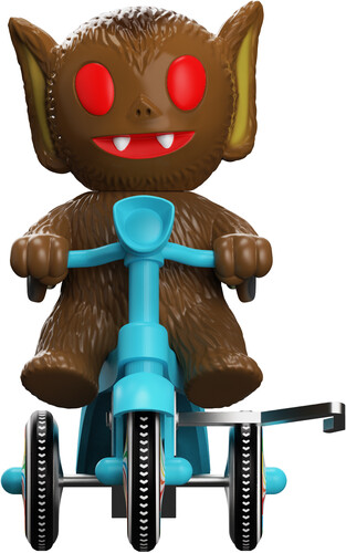 Inspired by the vintage-style plastic and tin wind-up tricycle toys and featuring an original character design from Super7’s Brian Flynn, this whimsical 5”, Super Cycle features an earthy-brown, soft vinyl Bat Boy in the driver’s seat of a blue trike with colorful wheels, ready to zip down shadowy trails and over moonlit hills to deliver messages between creatures of the night.