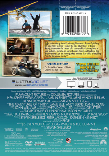From Academy Award winning filmmakers Steven Spielberg and Peter Jackson comes the epic adventures of Tintin. Racing to uncover the secrets of a sunken ship that may hold a vast fortune - but also an ancient curse - Tintin and his loyal dog Snowy embark on an action-packed journey around the world.