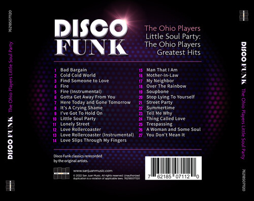 Grab your dancing shoes, and get ready to listen to some of Funk's greatest hits! With greatest hits like Little Soul Party, It's A Crying Shame, and Lonely Street, you are sure to reconnect with your love of these classics. This album also features two special instrumental versions of Fire and Love Rollercoaster. If you are an Ohio Players fan, or even a music fan, you are sure to love this album!
