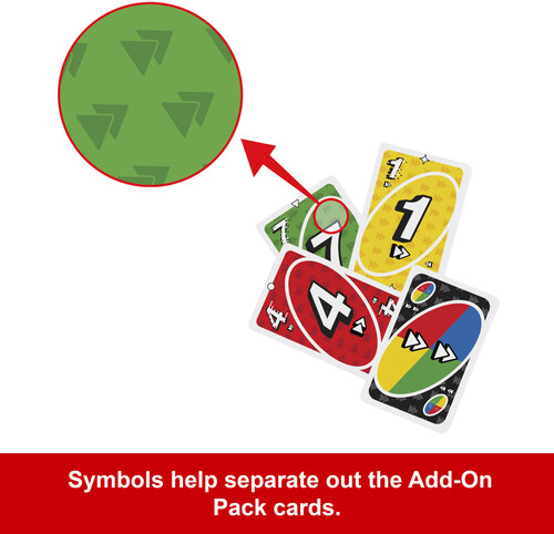 - Add UNO Add-On Packs to a classic deck of UNO cards to shake up the game; note: Classic UNO card game required!