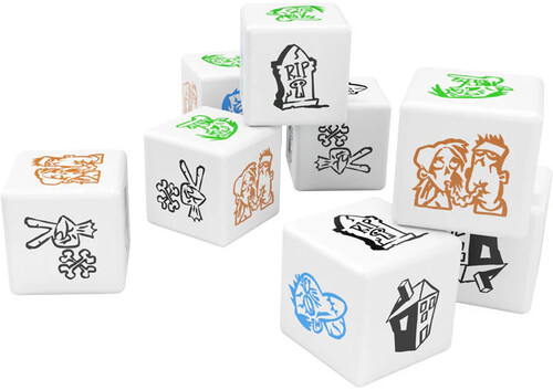 Components: 5 Building Locations, 1 Graveyard, 40 Zombies, 8 Zombie DIce, Rule Book